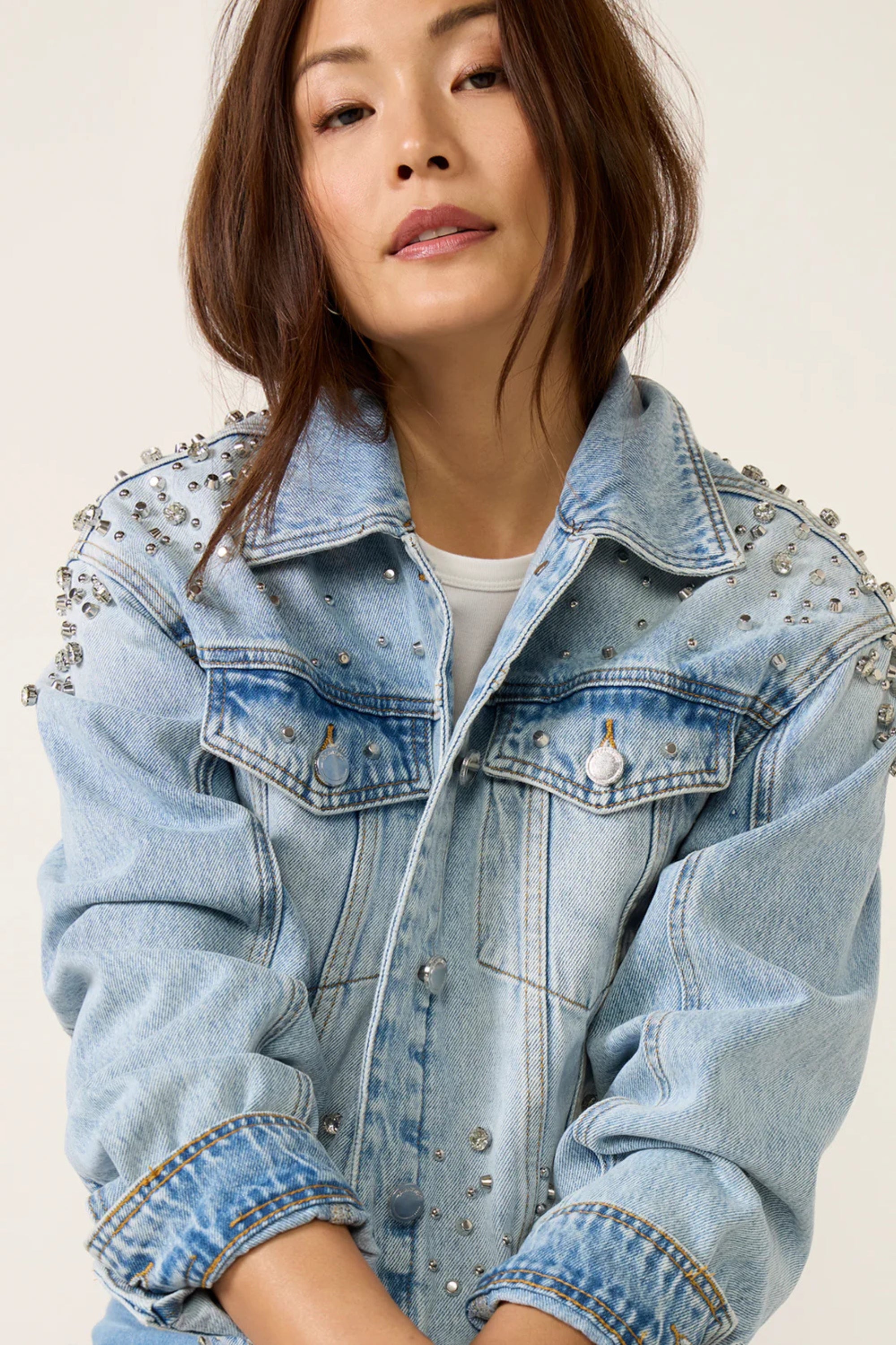 RHINESTONE EMBOSSED NAVY PINSTRIPE BLAZER