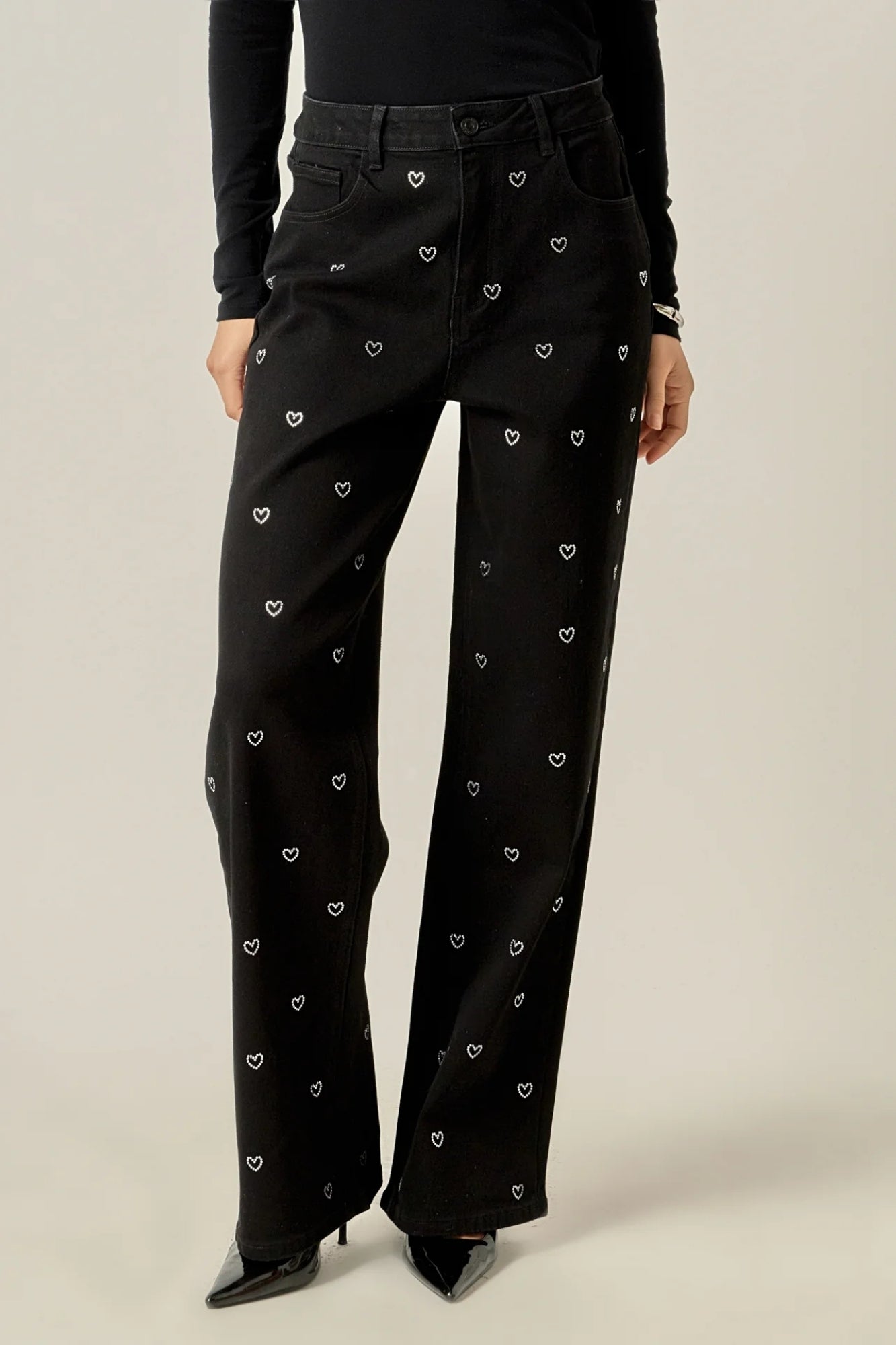 RHINESTONE EMBOSSED BLACK PINSTRIPE PANT