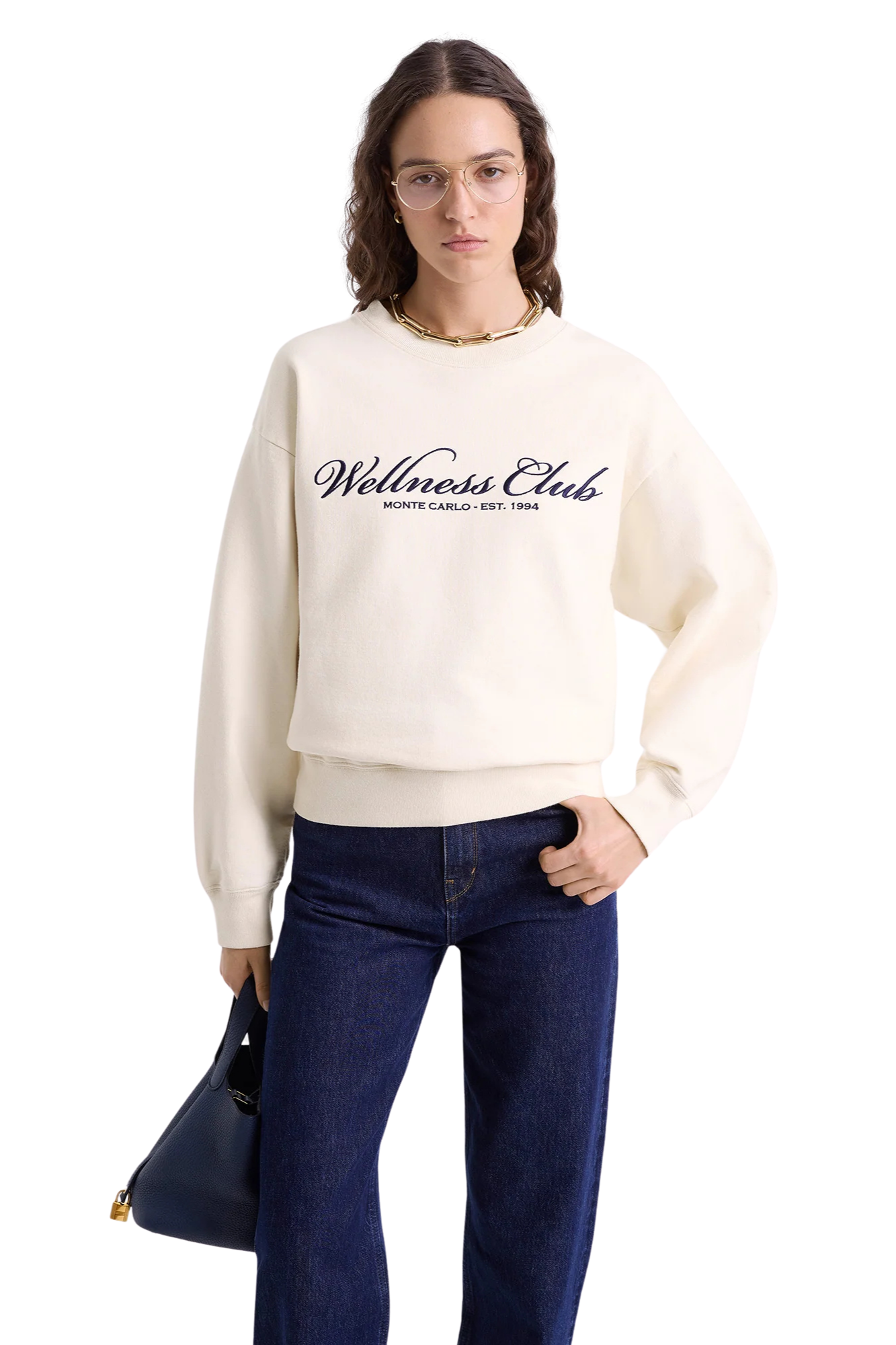 THE CROPPED COLLEGIATE SMOKE TREE GARDENIA SWEATSHIRT