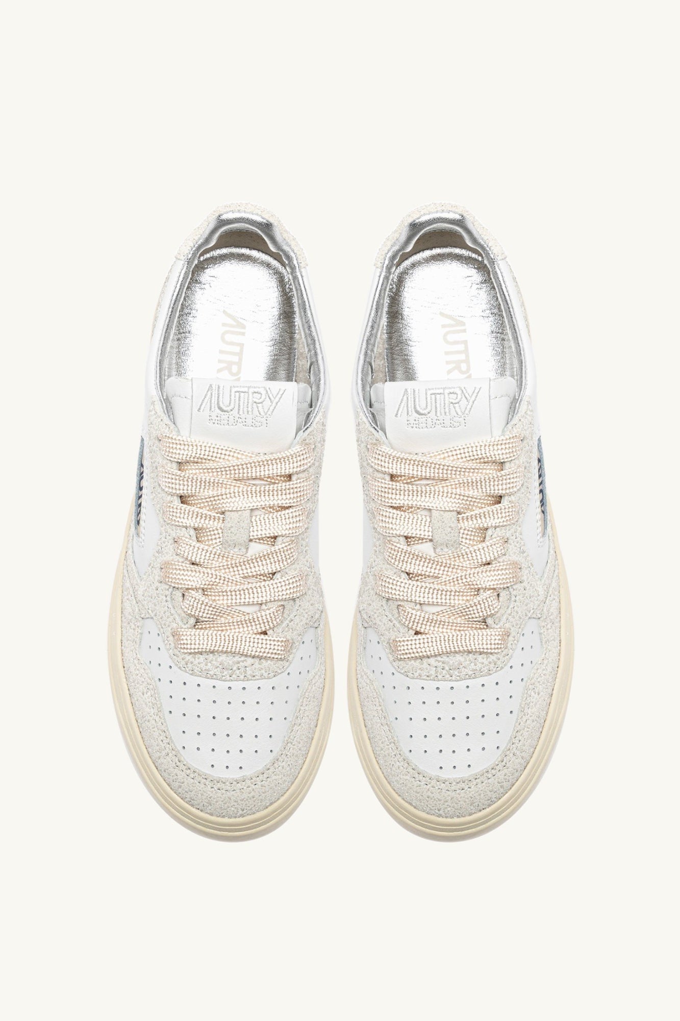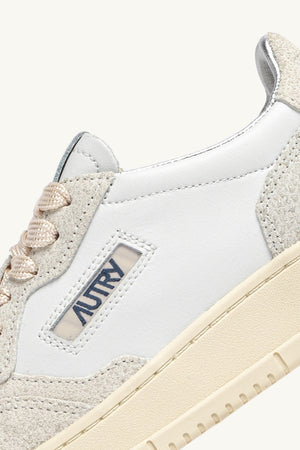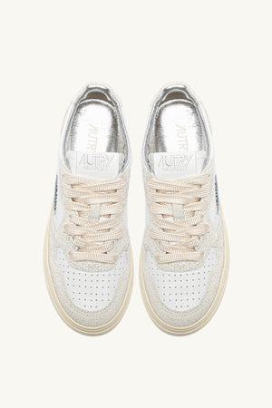 MEDALIST LOW SNEAKERS IN WHITE AND GLITTER LEATHER