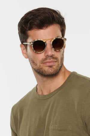 - This handcrafted frame is a combination of matte acetate and glossy 24K gold-plated stainless steel hardware