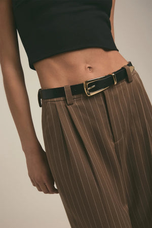 - The Statement Belt's 25mm flat strap has a leather lining and seven prong holes for a sleek look with extra adjustability