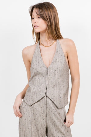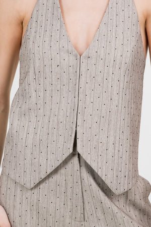 RHINESTONE EMBOSSED PINSTRIPE TAUPE SET