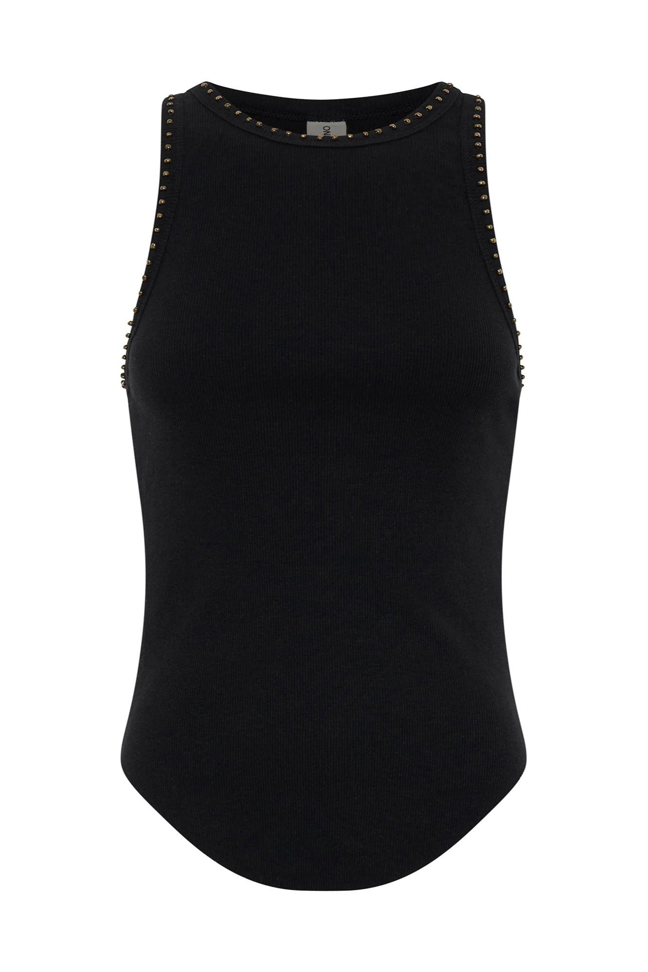 - The black handed beaded ramone tank redefines a classic silhouette with hand-beaded edge and rebel spirit