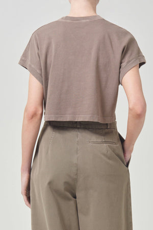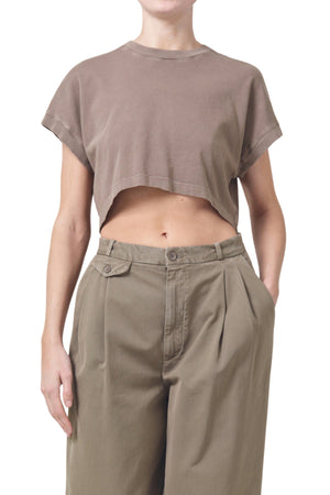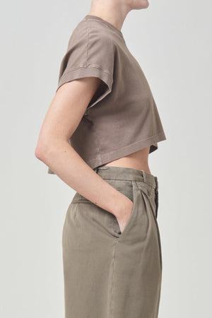 - Looks Like: Mocha brown raglan short sleeve cropped tee