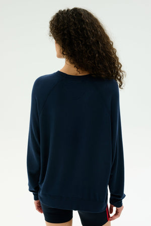 - This crewneck pullover is a throw back to the classic college sweatshirt. Indulgent and sporty, with raglan sleeves and ribbed hem and cuffs. The feminine drape stretch modal fabric is soft, versatile and ultra-flattering.