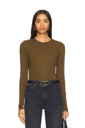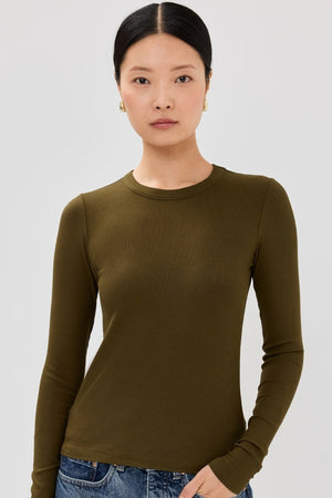 - Fitted lightweight rib knit tee with an elevated, wardrobe essential sensibility.
