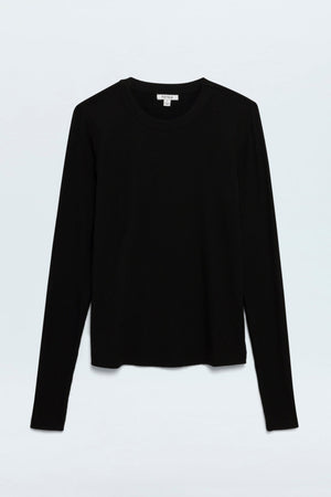 - Fitted lightweight rib knit tee with an elevated, wardrobe essential sensibility.