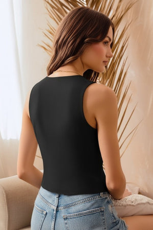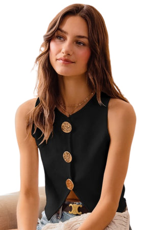 BIG METAL BLACK BUTTON FRONT LIGHT WEIGHT KNITTED VEST