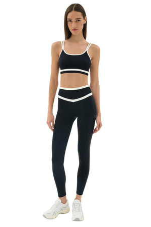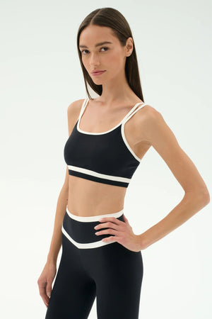 - Our Eva Rigor bra is designed to keep you comfortable and confident through every rep and routine. Double straps in white and black provide nice contrast color details for powerful look.