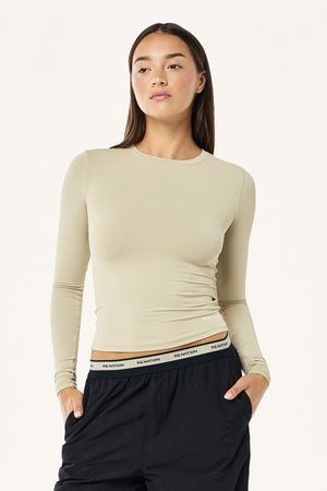 - The Foundation Long Sleeve Top in Biscuit is designed in our luxuriously soft fabrication, Body Luxe.