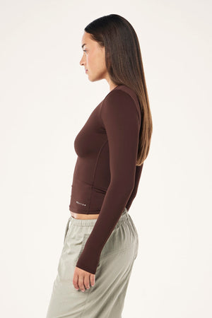 FOUNDATION LONG SLEEVE TOP IN MAHOGANY