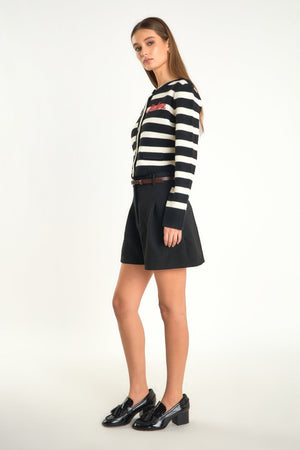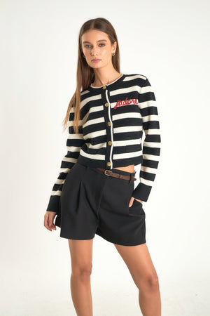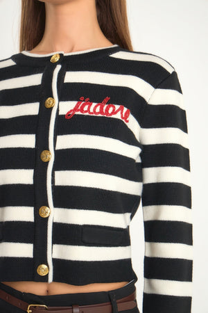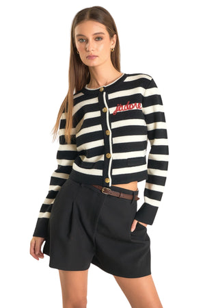 J'ADORE BEADED BLACK AND WHITE CARDIGAN