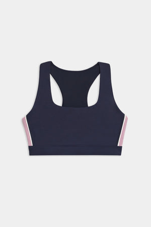- A high neckline, wide racer back and longer length means support and coverage for your most vigorous workouts.