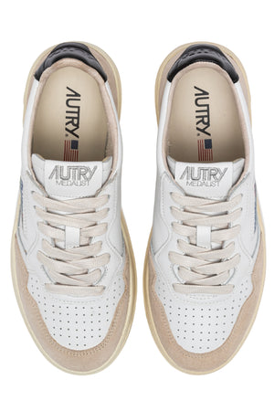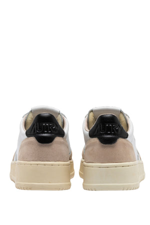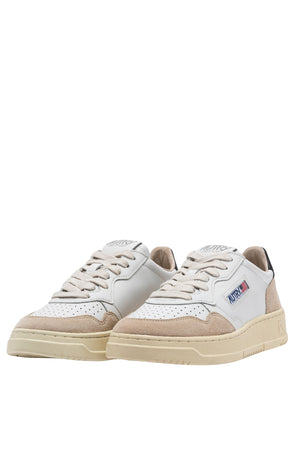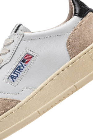 MEDALIST LOW SNEAKERS IN WHITE AND BLACK LEATHER AND BEIGE SUEDE
