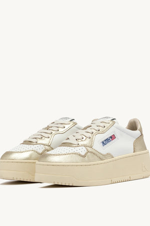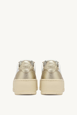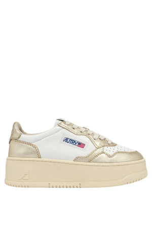 MEDALIST PLATFORM SNEAKERS IN WHITE AND PLATINUM LEATHER