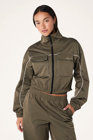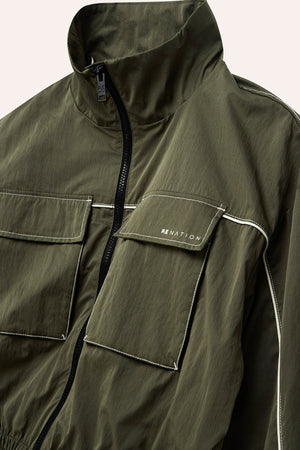 - This lightweight, spray-cropped jacket features a central zip for easy layering and two chest patch pockets for added functionality.