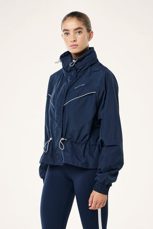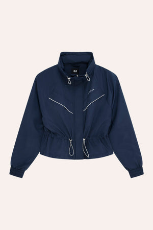 • The Shelter Jacket in Dark Navy is designed in our signature water resistant spray fabric.