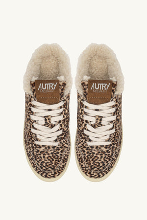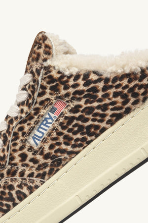 MEDALIST MULE SNEAKERS IN LEOPARD PONY HAIR EFFECT AND SHEARLING