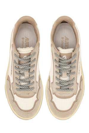 Made of mesh and suede and enriched with coated TPU details, side detail with Autry logo and a nubuck leather back patch with embossed logo.