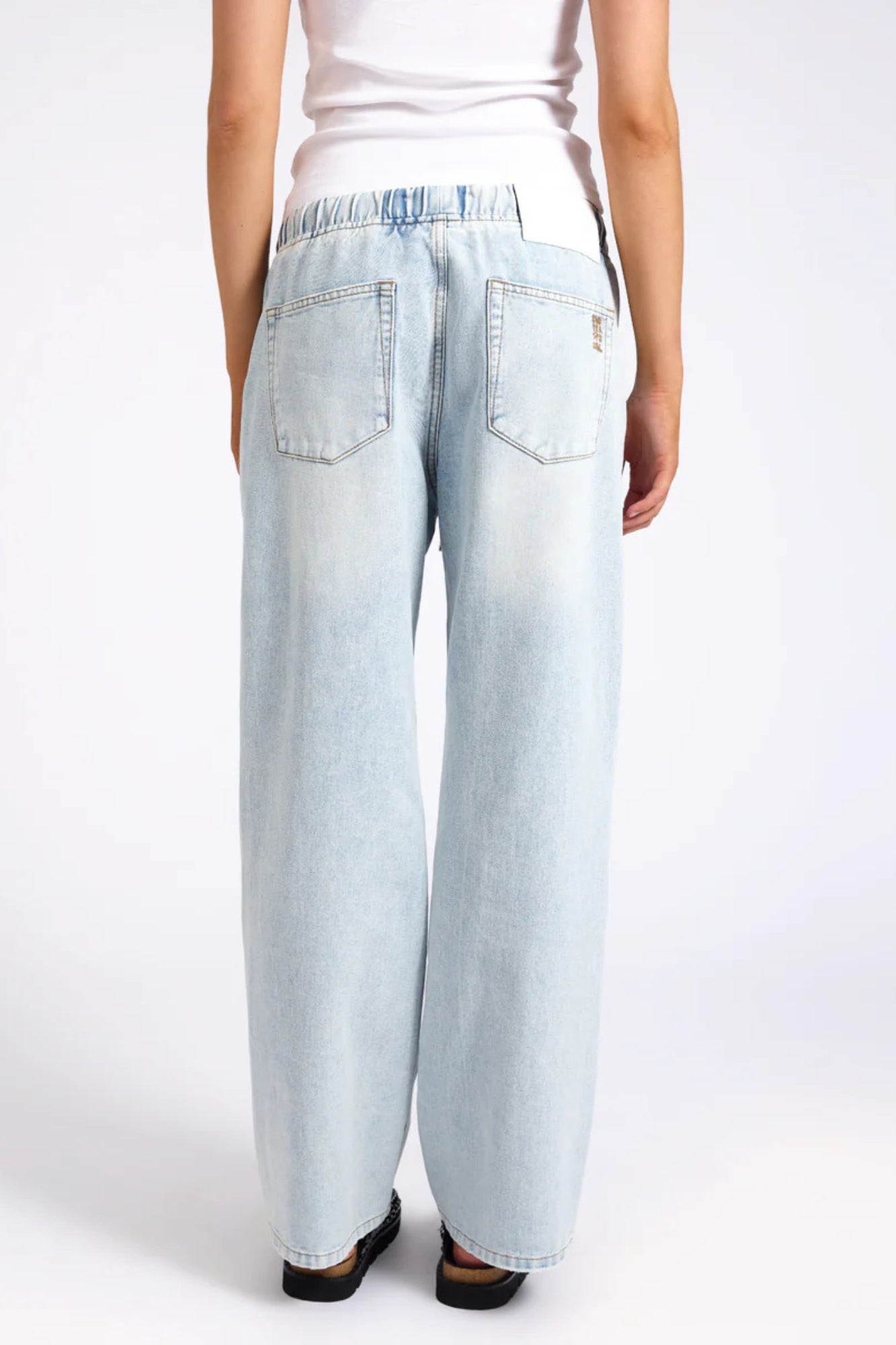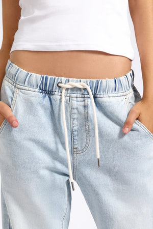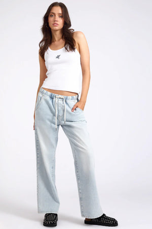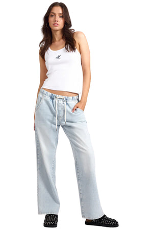 ROADHOUSE MID WAIST WIDE LEG DRAWSTRING BLUE LATTE DENIM JEAN