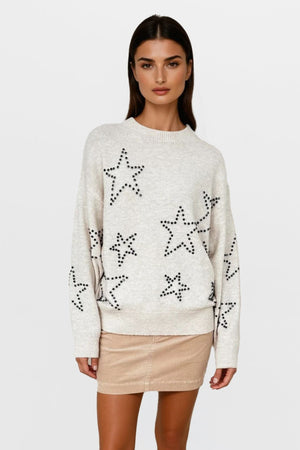 STUDDED STAR PERFECT VINTAGE WHITE SWEATER