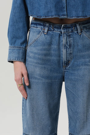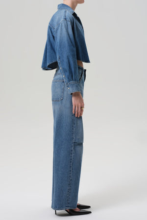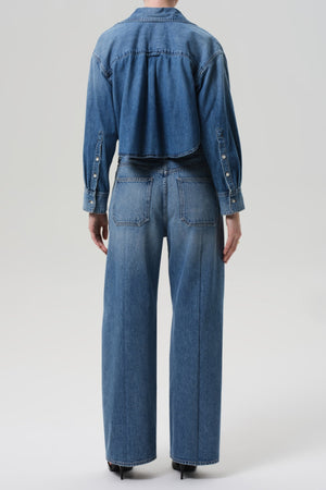- Crafted from weightless rigid denim with a soft, broken-in feel, it blends tailored elements with an easy, draped silhouette.