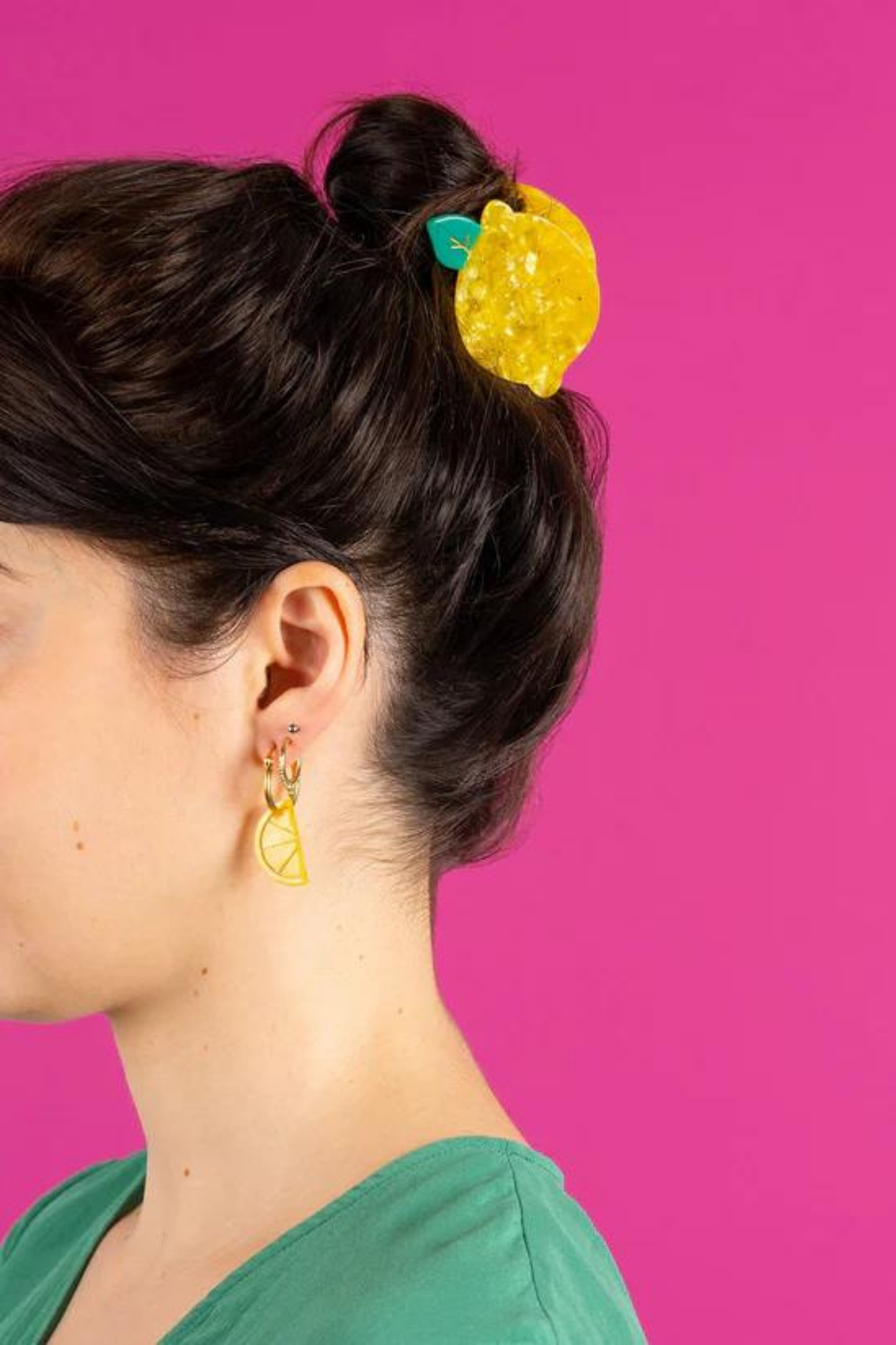- A nice lemon on the top of your head, or clipped at the handle of your straw bag for a back-from-the-beach look!