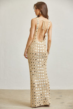 ROUND SEQUIN KNITTED GOLD MAXI DRESS