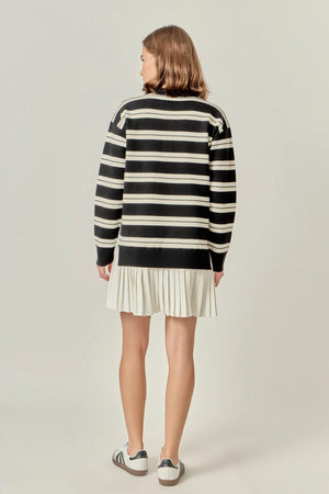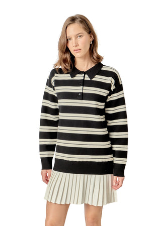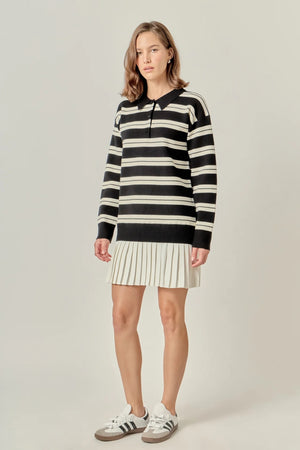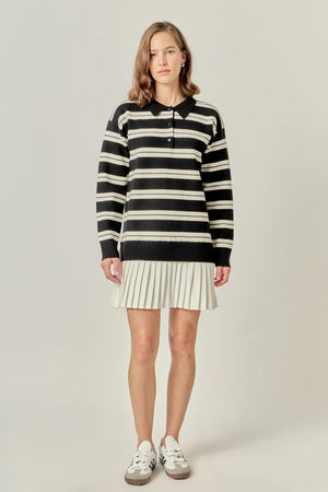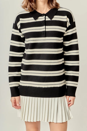 STRIPE POLO MIXED MEDIA MINI BLACK AND CREAM DRESS