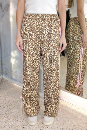 BOW DETAIL TAUPE ANIMAL TRACK PANTS