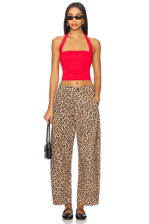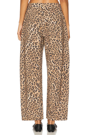 - This a cotton canvas barrel leg fit pant with a zip front and front/back pockets.