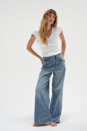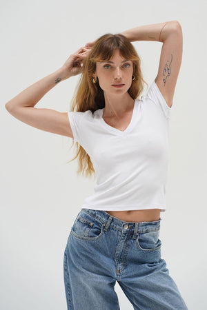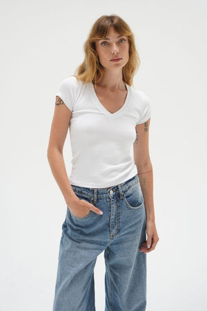 FITTED RIBBED V NECK WHITE 2X1 RIB
