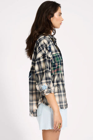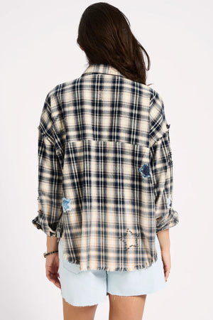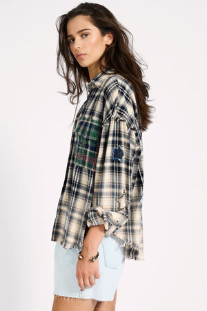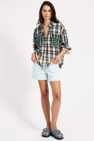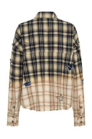 FLANNEL STAR STUDDED CREAM BLUE CHECK SHIRT