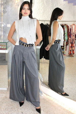 HALEY HIGH WAIST CHARCOAL PALAZZO PANTS