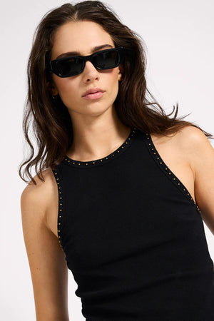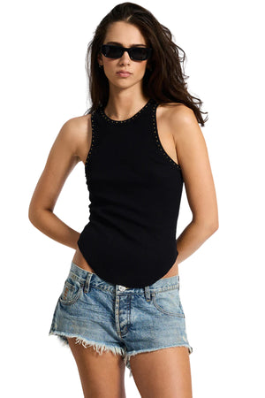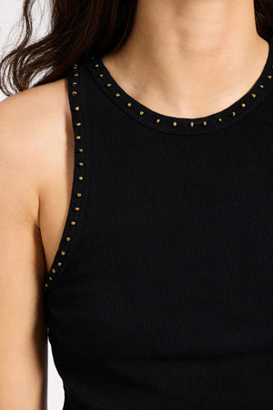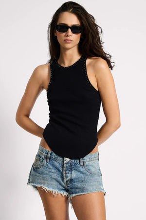 - The black handed beaded ramone tank redefines a classic silhouette with hand-beaded edge and rebel spirit
