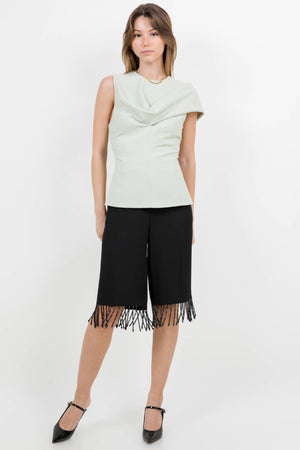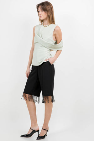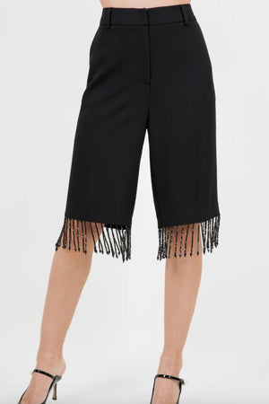 KNEE LENGTH WOVEN SHORTS WITH TASSEL BLACK BEAD TRIM