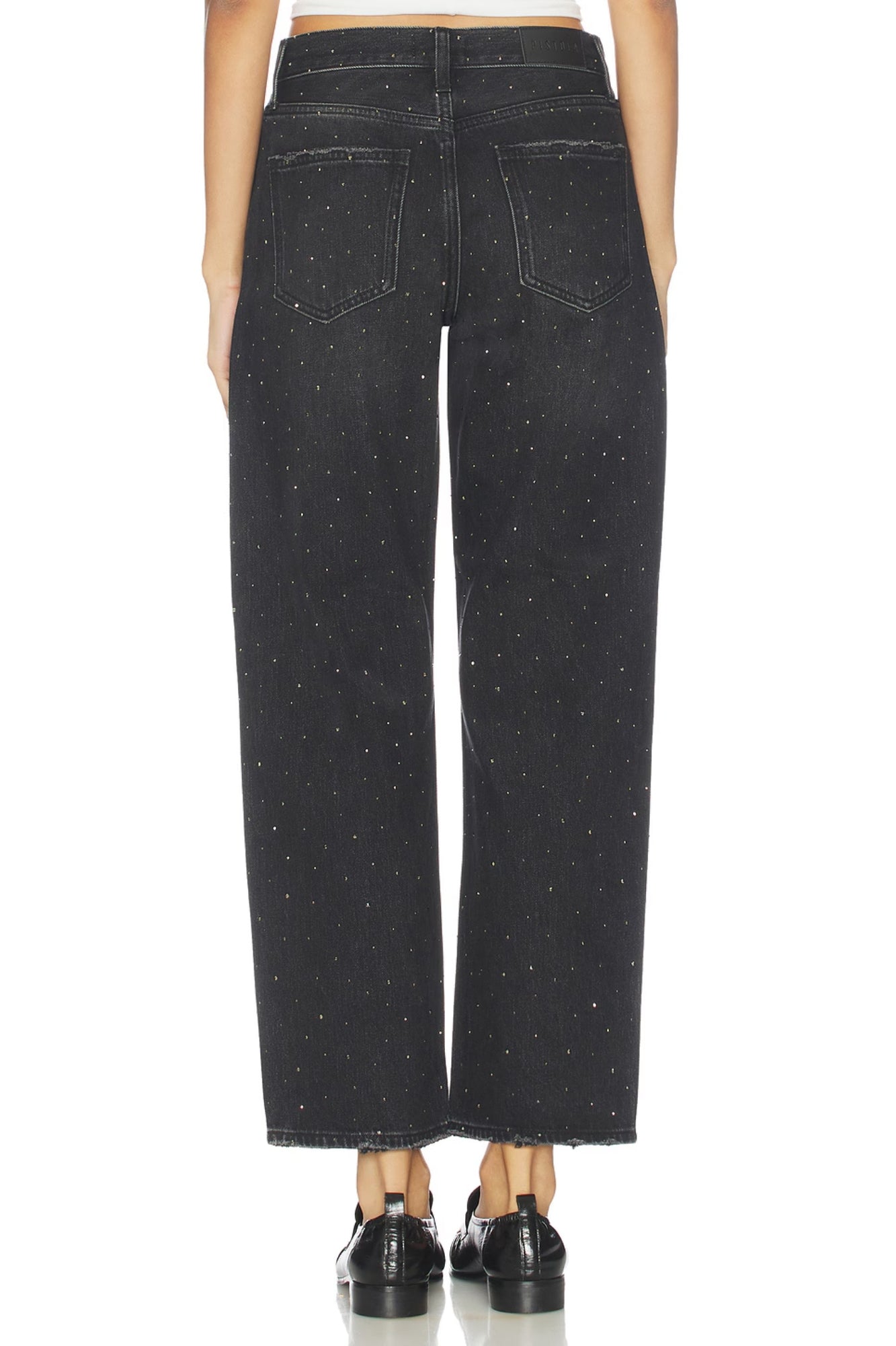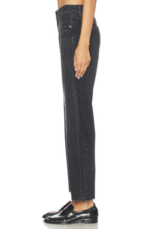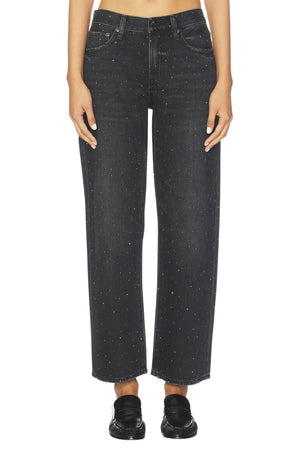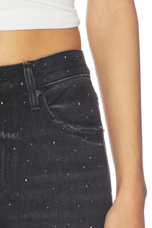 - Crafted from rigid denim in Silver Screen, a black wash adorned with micro rhinestones that catch the light for understated shimmer