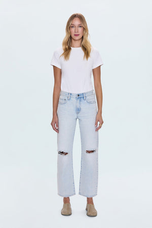 LEXI MID RISE BOWED SOLTD STRAIGHT SOLSTICE DISTRESSED