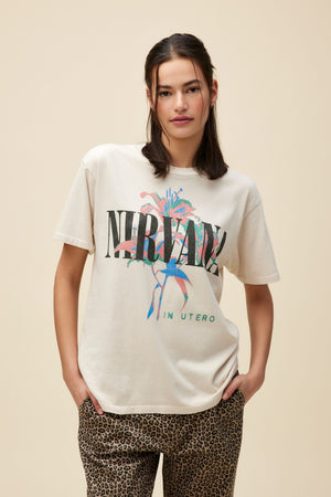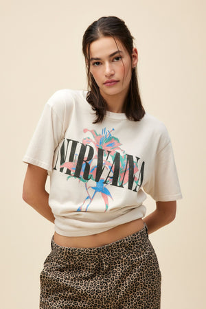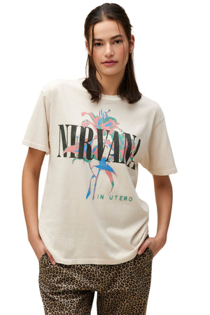 • Add to your grunge collection with a Nirvana In Utero lilies graphic featuring the flower synonymous with the group.