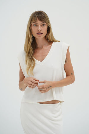 ORO RIBBED SLEEVELESS WHISPER WHITE