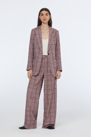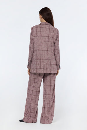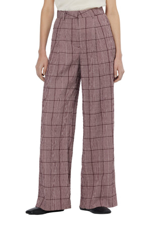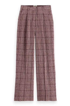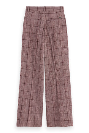 - Combining a high-rise fit with a wide-leg silhouette in classic Prince of Wales check, these breathable seersucker trousers offer comfort and style for formal occasions.
