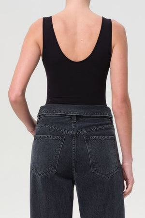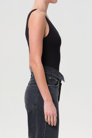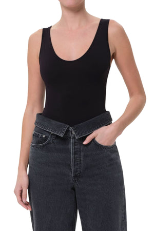 - Tora is a form-fitting tank bodysuit crafted from AGOLDE's signature second-skin fabric, offering a sleek, streamlined silhouette that molds to the body. With its minimalist design, featuring a classic crew neckline, this bodysuit is perfect for layering or wearing solo. The smooth, breathable fabric ensures comfort while its flattering fit pairs effortlessly with high-waisted jeans or skirts for an elevated, everyday look.