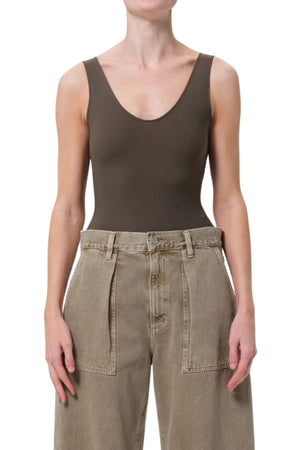 - Looks Like: Saturated olive scoop front and back bodysuit