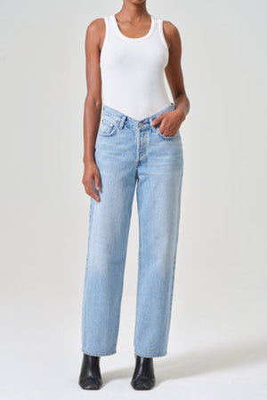 - Looks Like: Light marbled indigo with subtle fading and finished hems