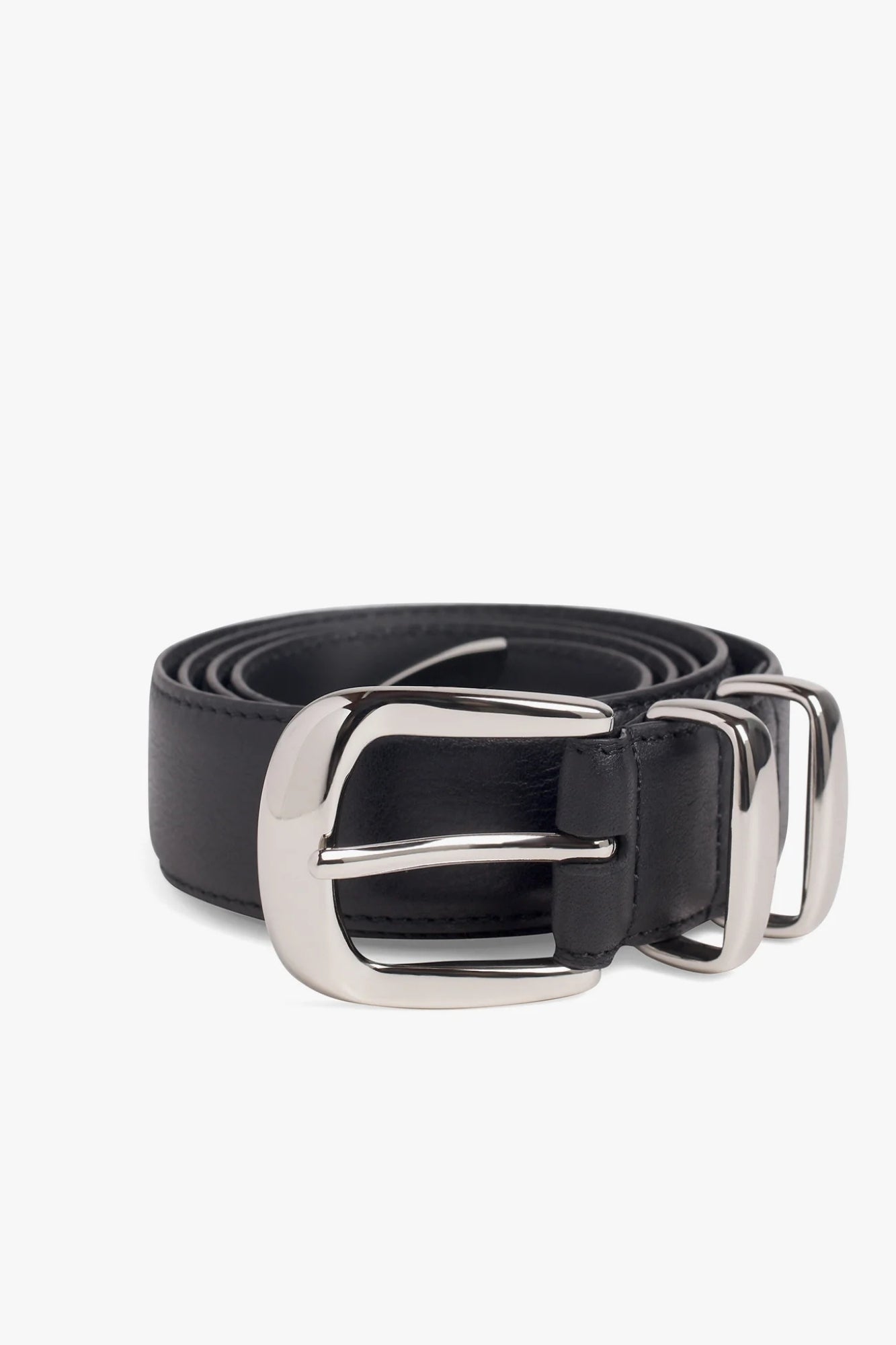 - This 30mm black belt is crafted from soft and supple leather with feather edge detailing and polished hardware