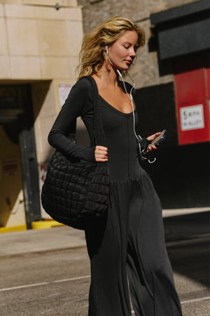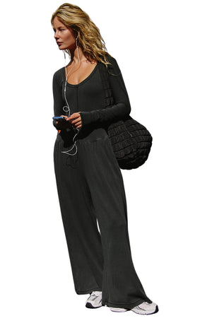 HOT SHOT WIDE LEG ONESIE IN BLACK