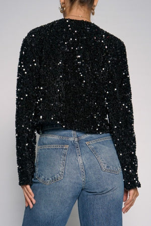 SEQUIN BOW TIE FRONT BLACK JACKET