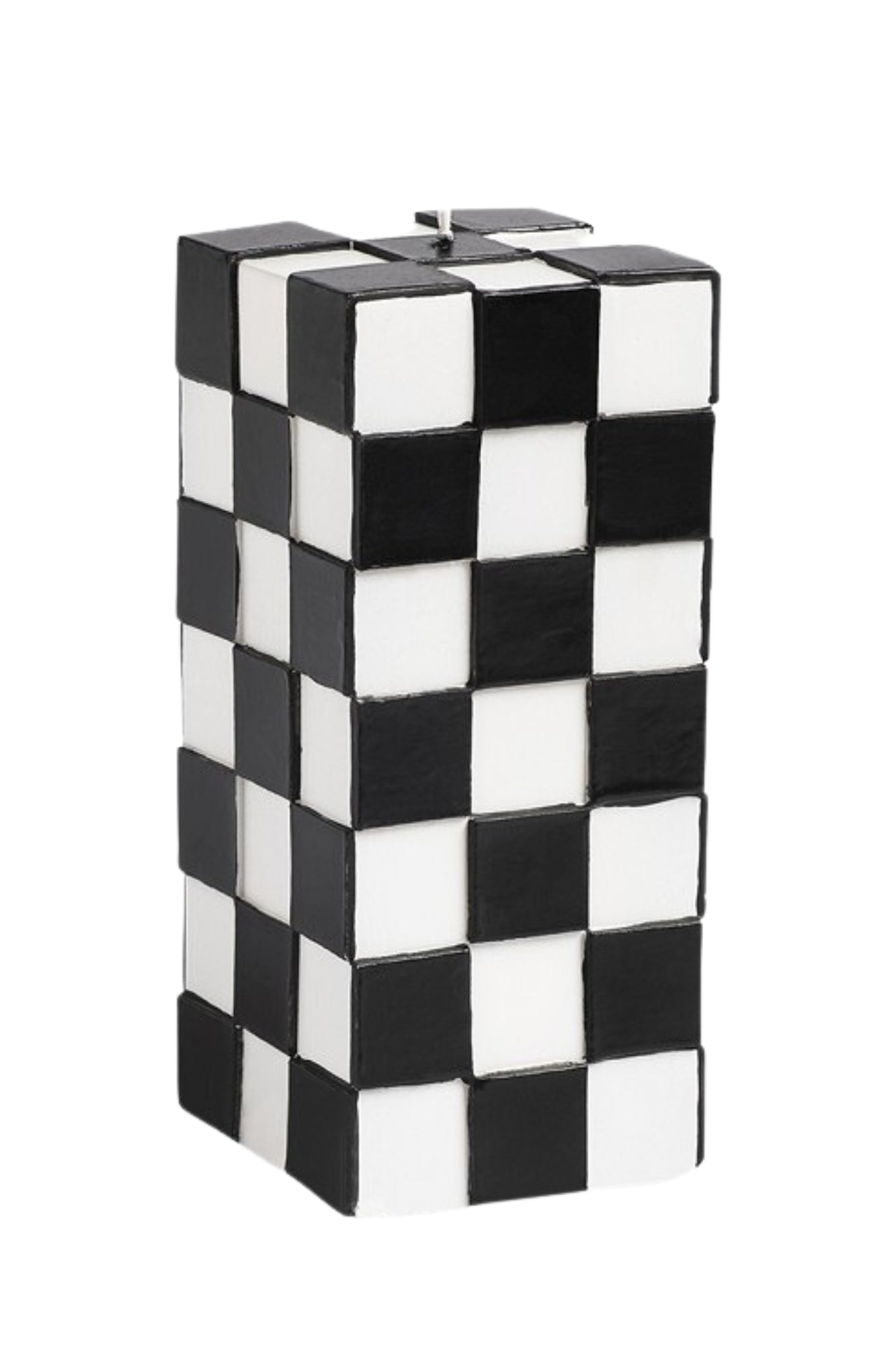 - Create a cosy but contemporary atmosphere at home with this check candle. The geometric print of the candle fits perfect in any interior. Estimated burning time per piece: 6 hours