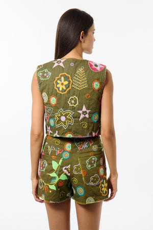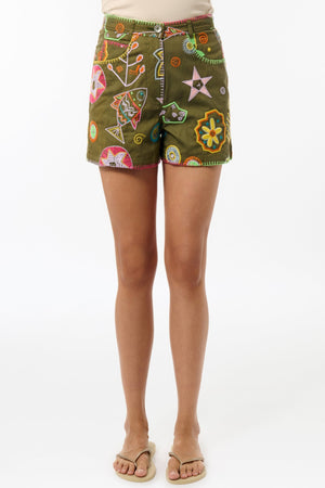 - These high-waisted shorts are embellished with embroidery and colourful stitching, creating a style that is both fashionable and effortless.